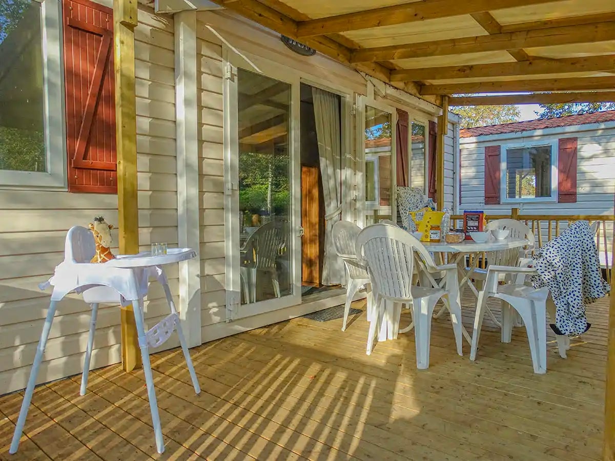 Chaque mobil-home est doté d’une terrasse couverte, agrémentée d’un salon de jardin et de bains de soleil vous permettant de profiter pleinement de l’air pur de la région. Les terrasses des mobil-homes Tribu disposent d’une plancha pour des grillades sous le ciel étoilé.